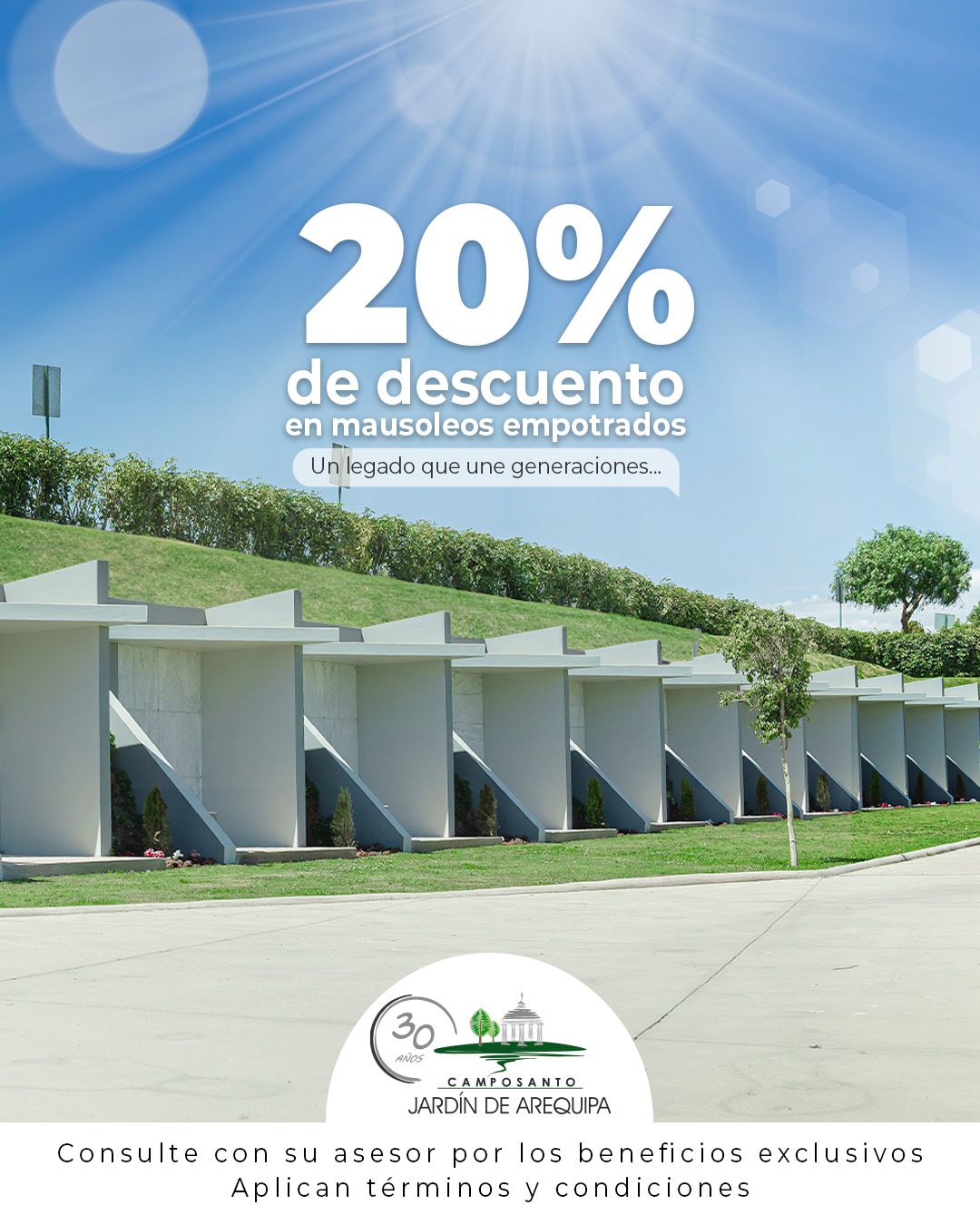• La presente campaña ofrece hasta un 20% de descuento sobre el precio de lista en la adquisición de mausoleos empotrados, durante el periodo de vigencia indicado.